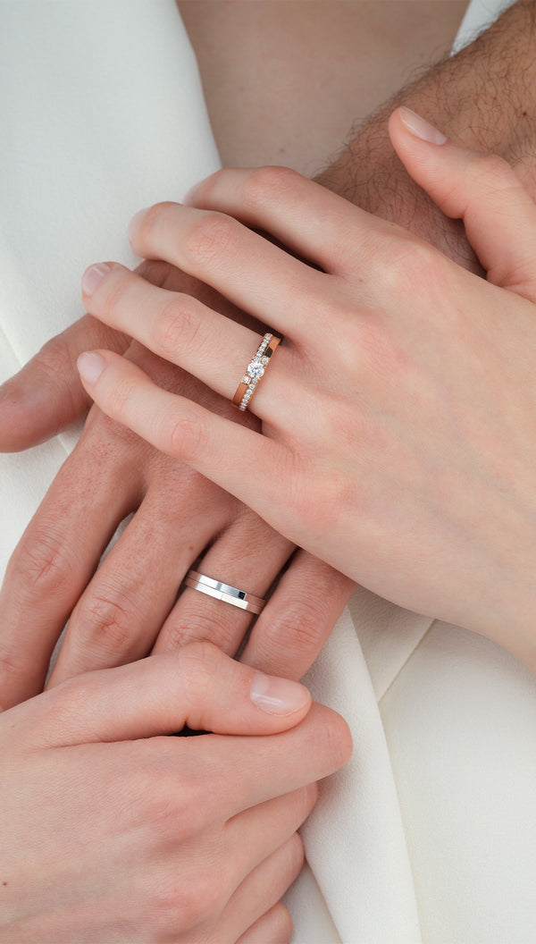 ゴールドラインにダイヤモンドをセットし、ソリテールリングを再解釈した魅力的な作品